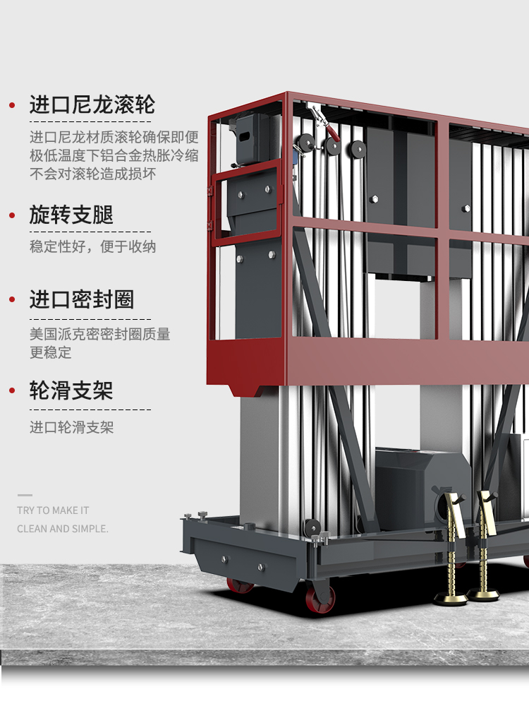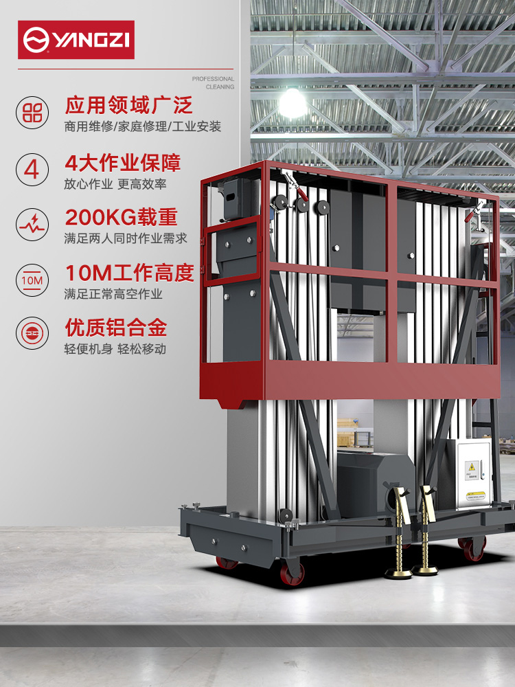 揚(yáng)子升降平臺YZ-DS2:應(yīng)用廣泛,4大作業(yè)保障設(shè)置,承載量打穩(wěn)如磐石,可以輕松移動,緊急斷電防誤操作,雙控制臺,雙操作更安心更方便,還擁有防爆閥等優(yōu)質(zhì)選材