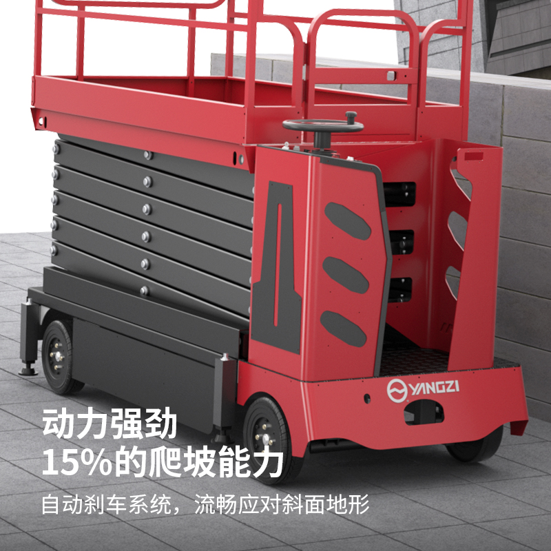 揚子站駕式升降平臺SJZ :全新安全設(shè)計,高強度材質(zhì),精工細節(jié),站駕控制,動力強勁,可拆卸護欄,用戶可自行控制車輛的移動、平臺的升降在高空獨自實現(xiàn)連續(xù)操作。