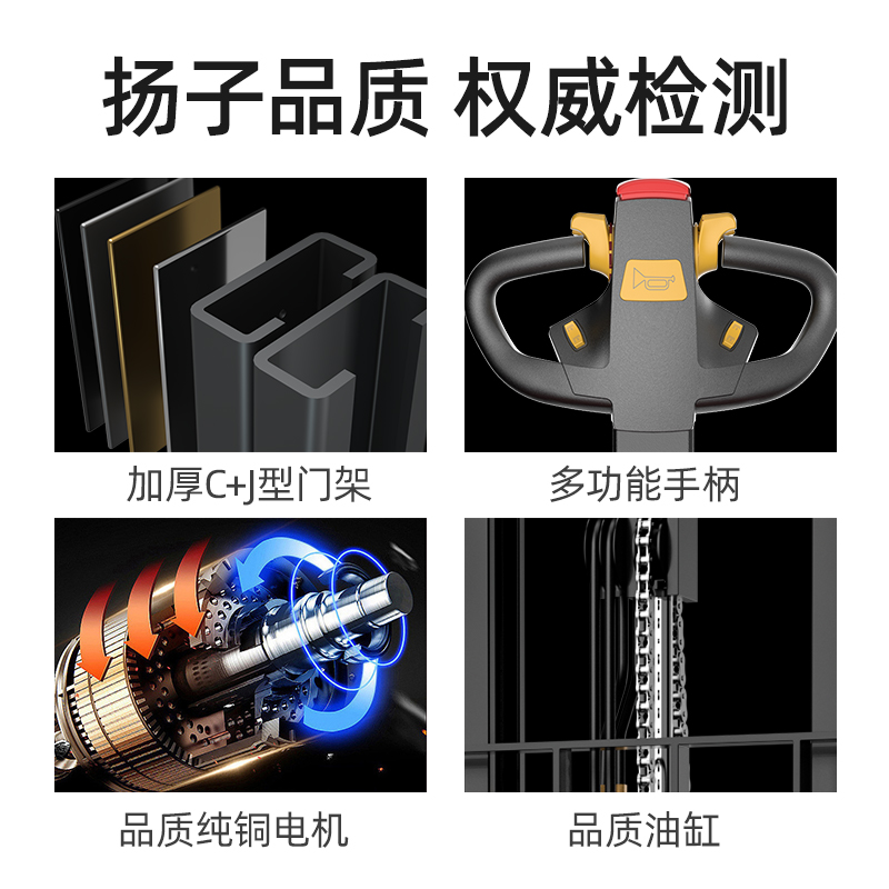 揚(yáng)子堆高車 CPDB16:全電動(dòng)無支撐站駕式腿推高車,高強(qiáng)度鋼材,續(xù)航力強(qiáng)大,多功能手柄,擁有ECP轉(zhuǎn)向系統(tǒng),180轉(zhuǎn)向不費(fèi)勁,品牌電池續(xù)航更耐用,效果更高。