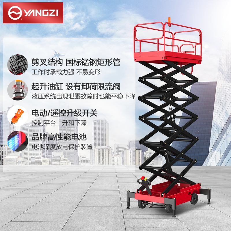 揚子剪叉式電驅步行式平臺SJY:剪叉式電動升降平臺穩(wěn)定性更好,高強度好品質首選揚子品牌