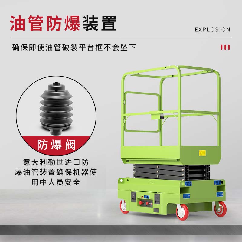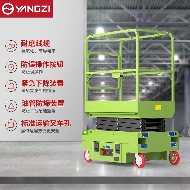 揚(yáng)子升降機(jī)手推剪叉式升降平臺(tái)JCPT:移動(dòng)方便,防爆裝置確保即使油管爆裂平臺(tái)框不會(huì)墜下