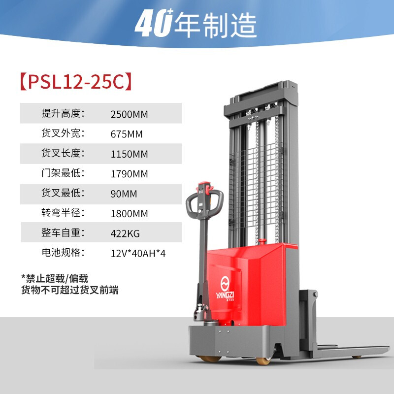 揚子熱賣款電動堆高車PSL-C是眾多物流,倉庫、車間、貨運搬運堆高的選擇之一,其大容量品牌免維護電池得到一致好評,且動力強勁更為安全耐用,使用壽命更長久