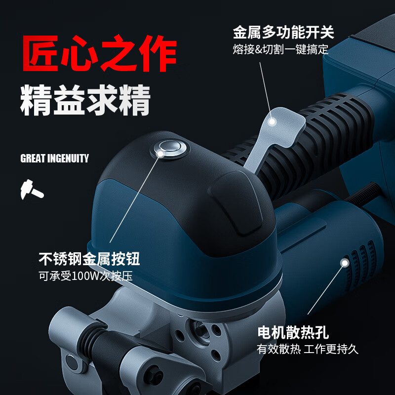 手持電動(dòng)打包機(jī)D19,5500N強(qiáng)勁拉力,銅芯電機(jī)低音轉(zhuǎn)軸,400MA*2雙電池超長續(xù)航,充電僅需90分鐘