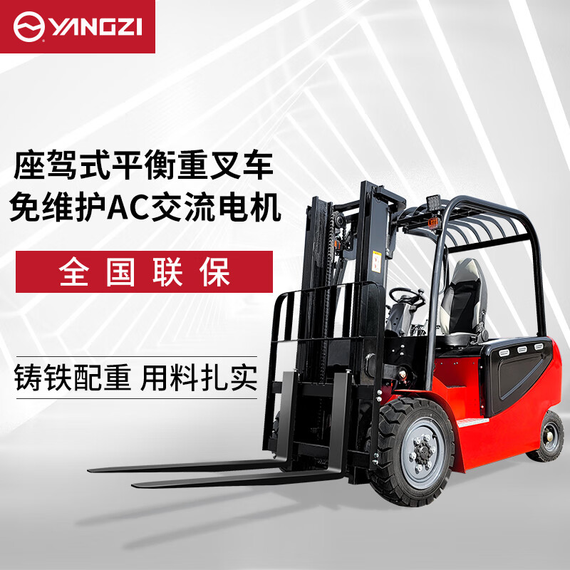 揚(yáng)子電動(dòng)叉車CPD30-40C 四輪座駕式叉車3噸升高4米,采用汽車操控方式,多功能顯示屏,鋼板車身