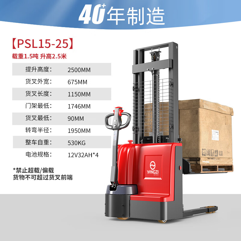 揚(yáng)子步行式全電動(dòng)堆高車PSL1525-1.5噸升高2.5米(圖1)