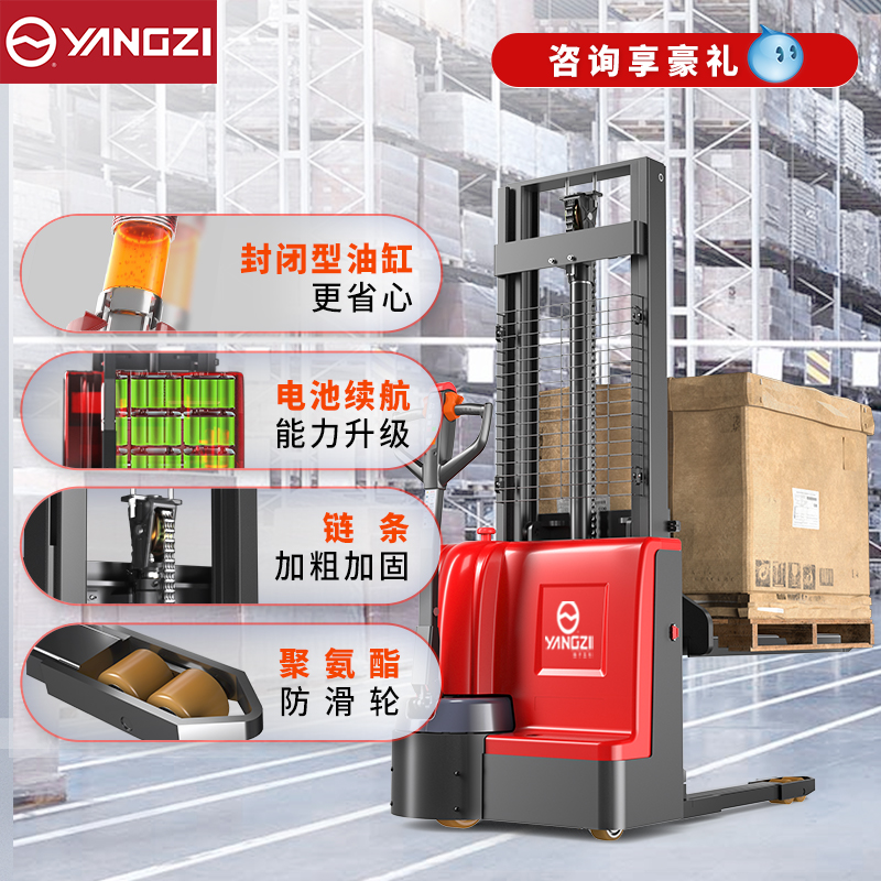 揚(yáng)子步行式全電動(dòng)堆高車PSL1525-1.5噸升高2.5米,加強(qiáng)型油缸,全新技術(shù)升級(jí),快速提升油缸,提升速度快而有力