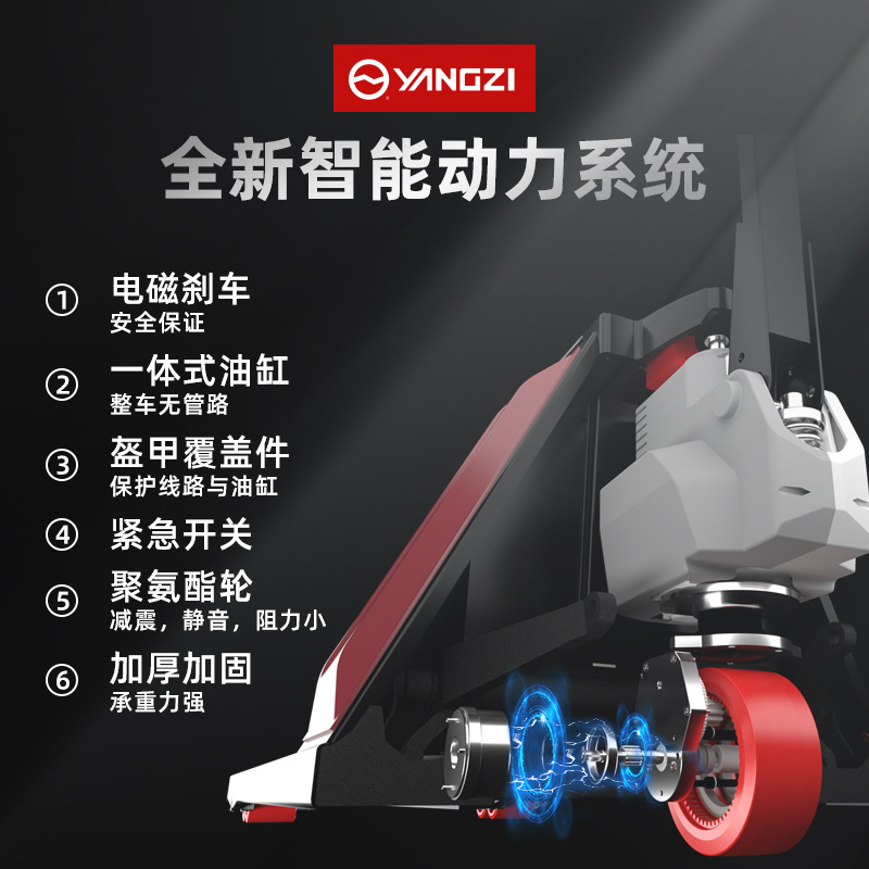 揚(yáng)子搬運(yùn)車QBM:全新智能動(dòng)力系統(tǒng),電磁剎安全有保障,一體式油缸整車無管路,加厚加固承載力強(qiáng),電動(dòng)行走輕松搬運(yùn)。BMS管理系統(tǒng),持久續(xù)航。